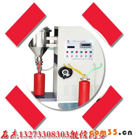 本实用新型要解决的问题就是提供一种不用人工灌粉、计量准确的干粉灭 火器快装装置。为解决上述问题,本实用新型采用的技术方案为:包括若干个传输辊,所 述传输辊上设置有盛放干粉灭火器罐体的托盘,传输辊上面设置有带粉阀的灌 粉管,灌粉管通过输粉管与粉罐相连接,传输辊的与灌粉管位置相匹配处设置 有前后拦截柱、前后接近传感器、顶杆和与电子秤相连接的重力传感器,灌粉 管、前后拦截柱、前后接近传感器、顶杆、电子秤、重力传感器分别与控制器 相连接。
